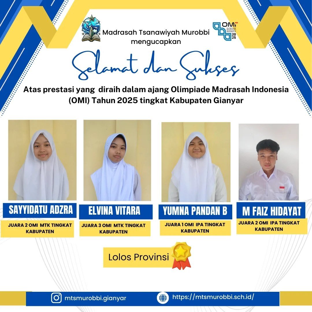 Prestasi Gemilang MTs Murobbi di Olimpiade Madrasah Indonesia (OMI) 2025 Tingkat Kabupaten