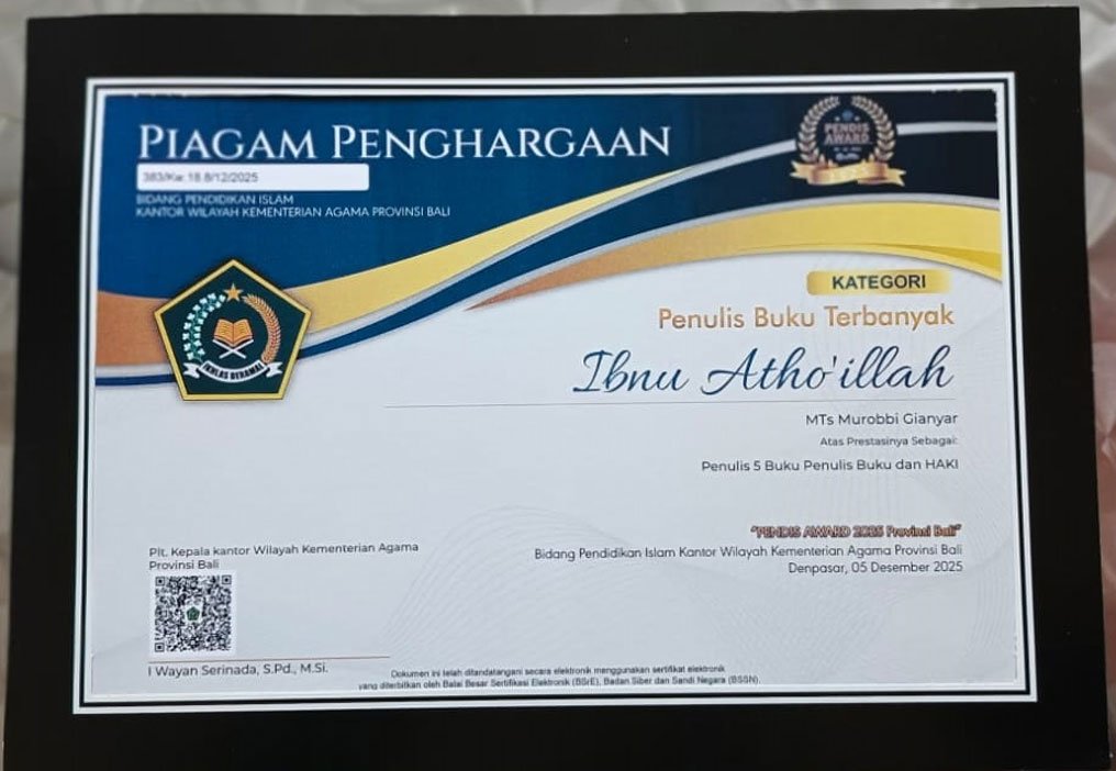 Penghargaan Penulis Buku Terbanyak 2025 untuk Guru MTs Murobbi